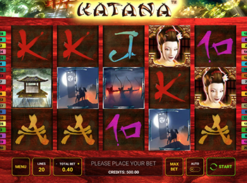 Слот-машина Katana раскроет игрокам секреты выигрышей. Как и все восточное – они просты и незамудренны. В их основу легли опции специальных символов – Вайлда и Скаттера. Вайлдом стал величественный самурай, Скаттером – катана. Дикий заменит любые рисунки, кроме катаны, что поможет чаще собирать три и больше одинаковых цепочек в ряду. Разброс активирует серию из десяти фриспинов.